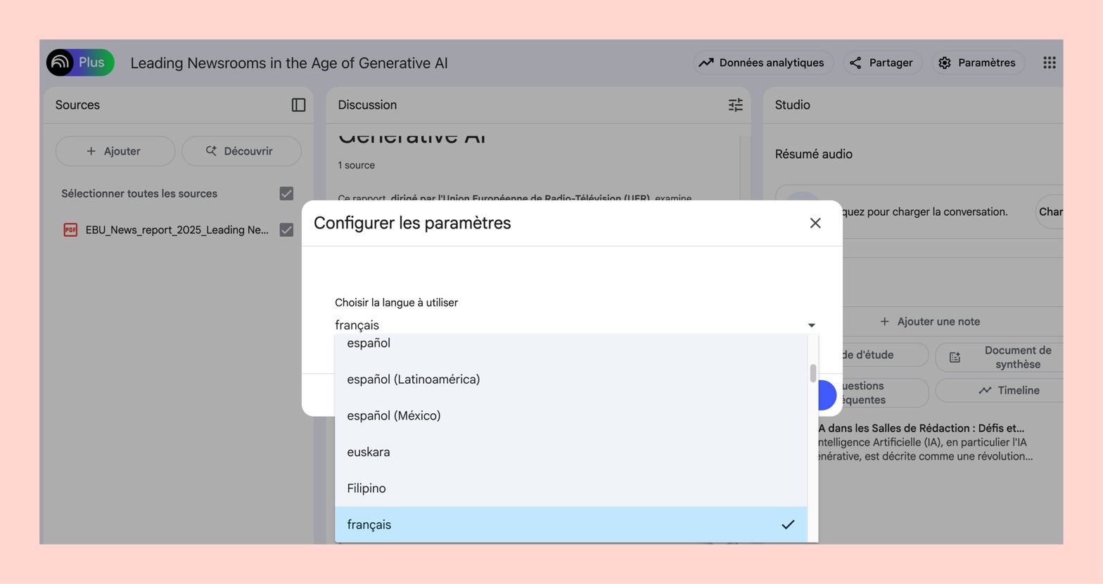 Notebook LM, l’outil de transcription, d’analyse et de création automatique de podcast de Google vient enfin de se doter d’une traduction multilingue. Le résultat en est bluffant. Evidemment, si tout le monde fait ça, le bénéfice s’annule. Il faudra s’en servir avec intelligence, comme je le suggère dans le dossier de la semaine.