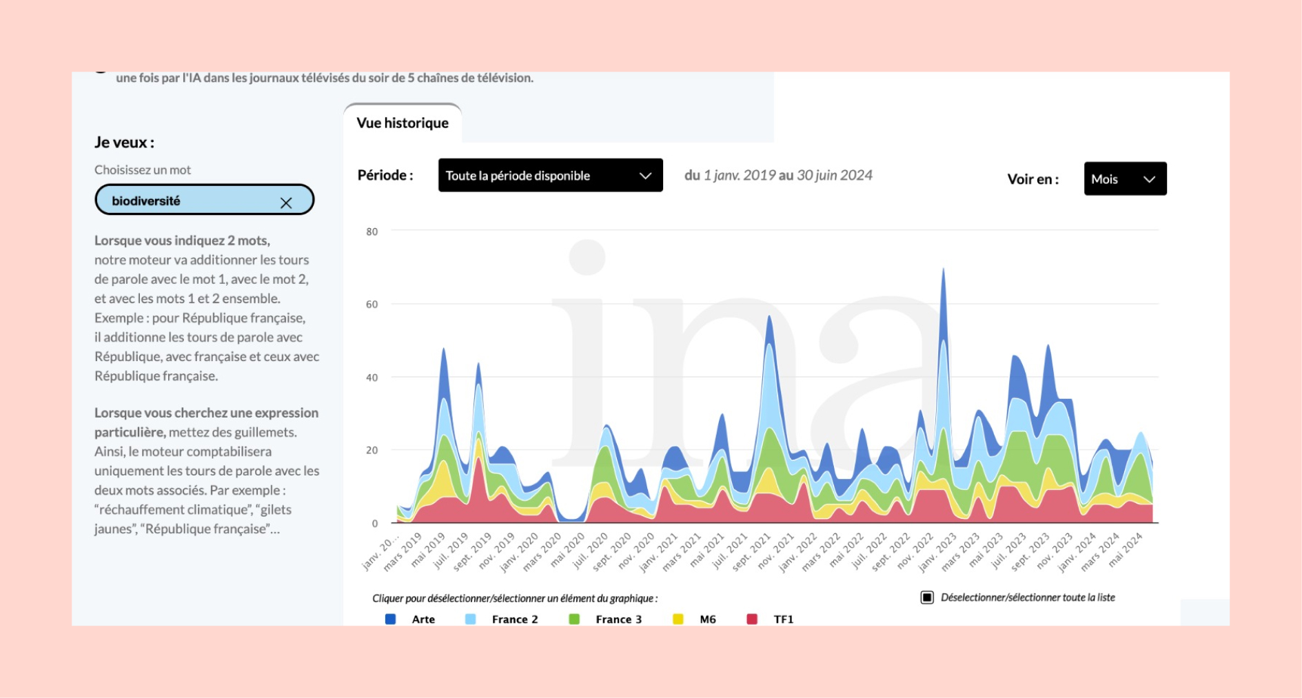 Data.ina.fr, nouveau site de l’INA, propose un outil incroyable pour analyser le traitement médiatique (JT, chaînes d’info en continu, radio). Ses concepteurs se sont servis de l’intelligence artificielle pour traiter des masses de données immenses. Le travail de l’agence Wedodata assure la lisibilité maximale des résultats. Vous pouvez faire une recherche par mots-clés, dates, lieux, personnalités… Très utile !