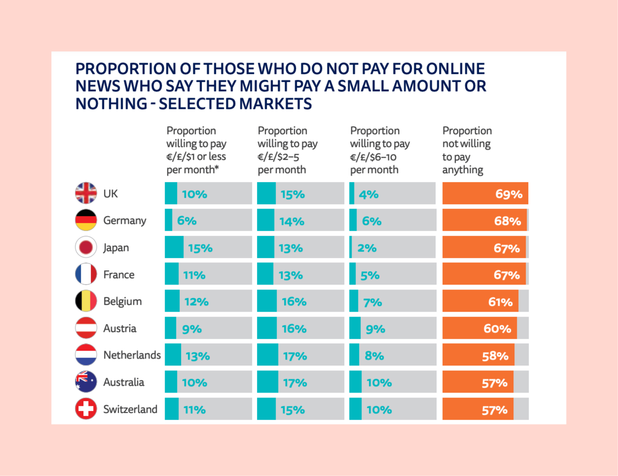 56% des citoyens de tous pays refusent de payer pour s’informer, et plus encore chez les moins de 35 ans) - Reuters Institute (p. 51)