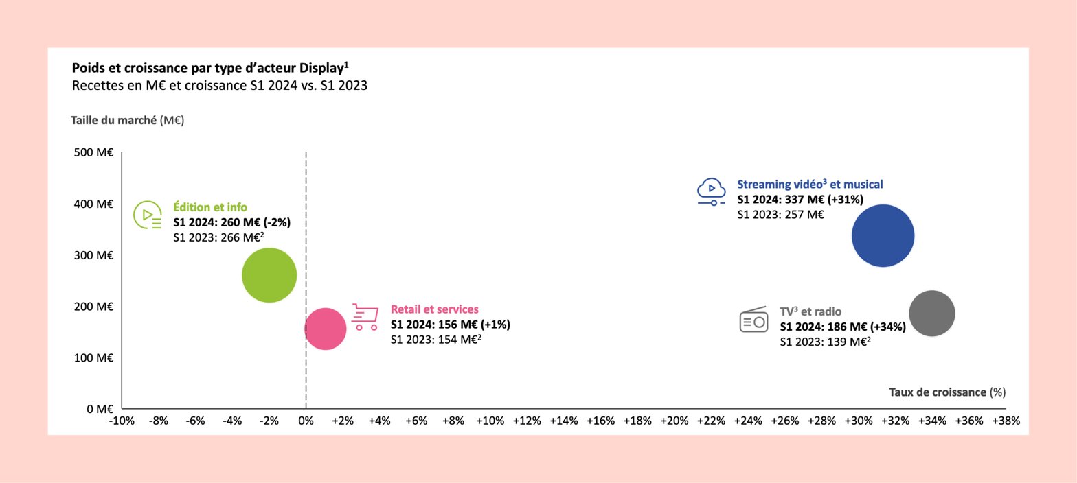 2. Même si les médias audiovisuels s’en sortent plutôt bien en 2024, les plus grands gagnants de la croissance du display sont les acteurs du streaming et les broadcasters
