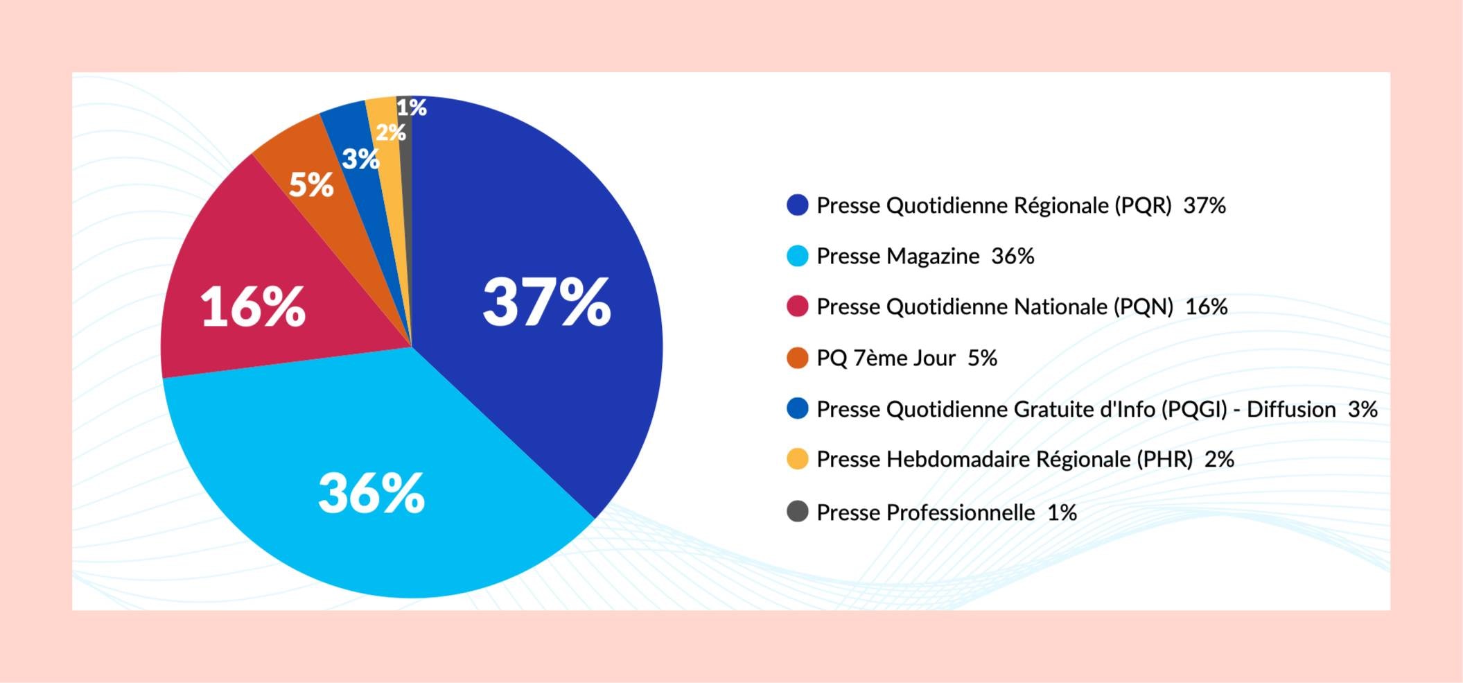La presse française s'est diffusée à 2,7 milliards d'exemplaires. Le premier canal de diffusion demeure l'abonnement, print ou numérique, qui représente 46% de la diffusion payée. En parallèle les sites et applications de presse représentent 85% des consultations.