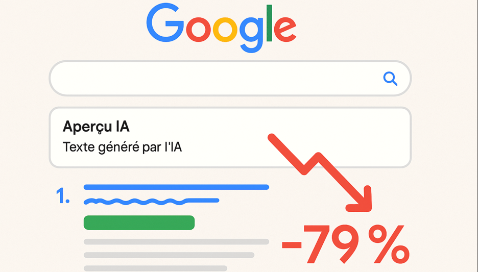 Un site classé en première position sur Google peut perdre jusqu’à 79 % de son trafic si un Aperçu IA apparaît au-dessus.